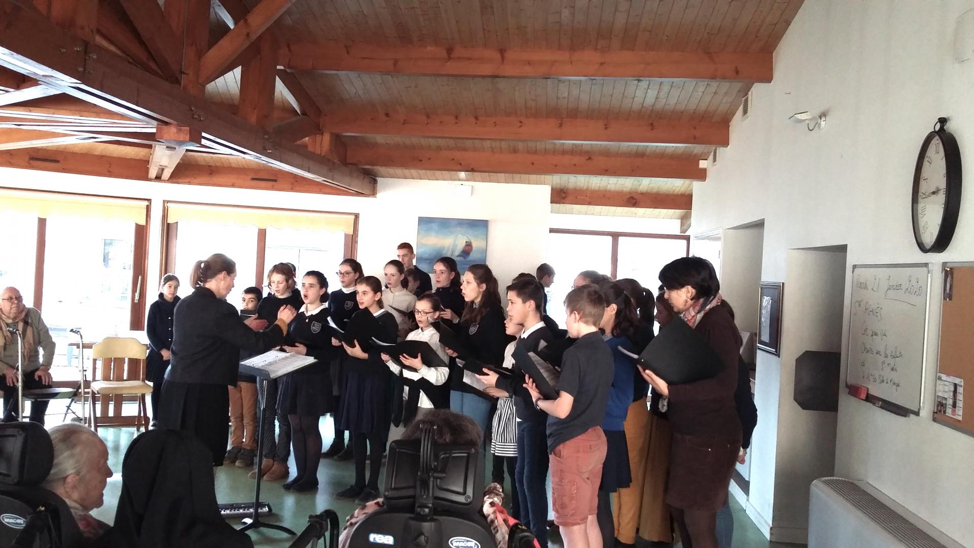 La joie se lisait sur le visage des résidents, ce 21 janvier 2020 : ils ont souri, et même chanté à certains moments. Et c'est avec bonheur que les élèves ont chanté leur répertoire de Noël et récité des poésies. Ils ont ensuite servi le goûter et engagé la conversation. Ils ont surmonté une timidité bien naturelle et sont allés à leur rencontre. Les Servantes des pauvres étaient aussi présentes, ainsi que le directeur de la maison de retraite.