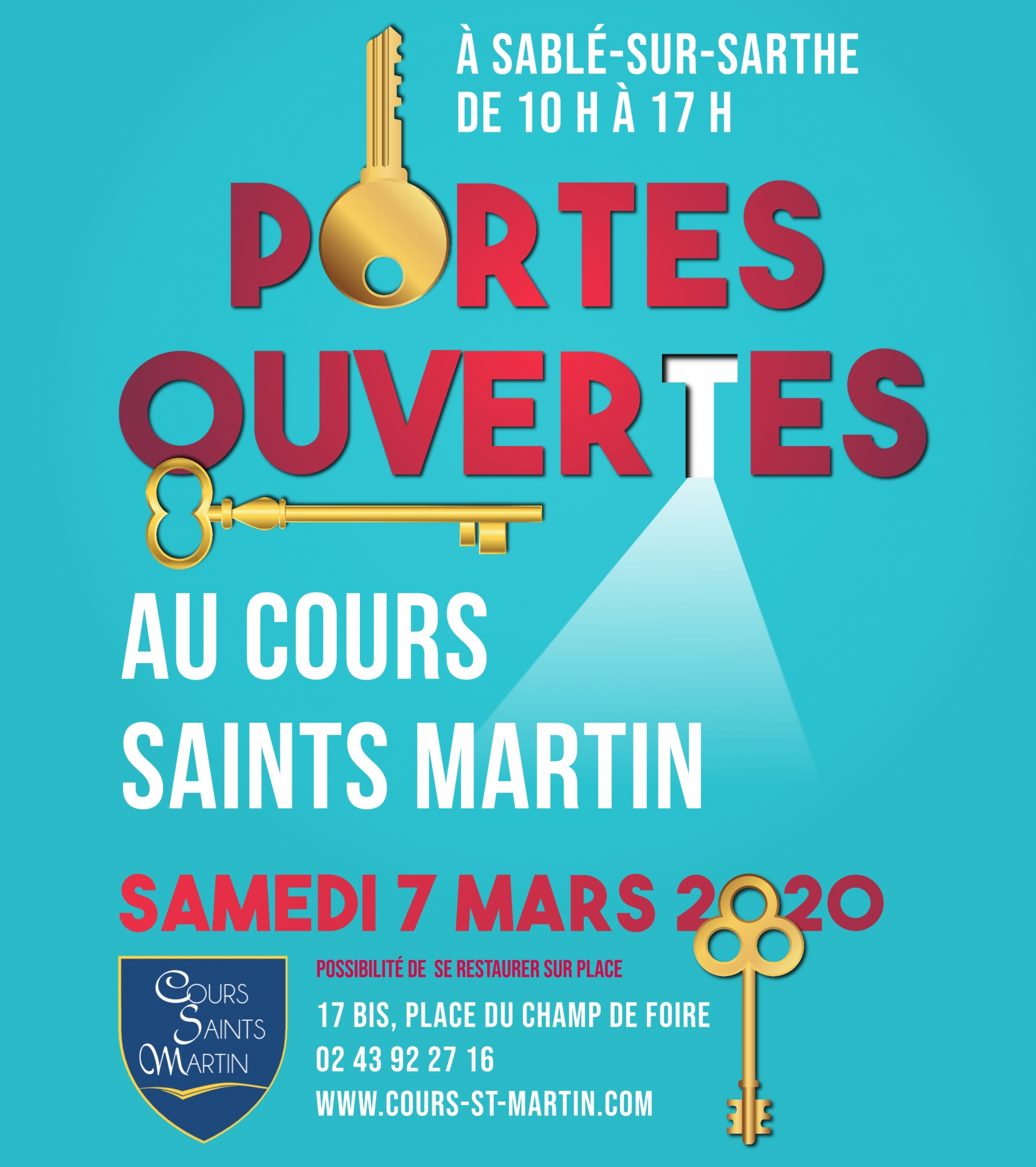 Les élèves et toute l'équipe pédagogique sont heureux de vous accueillir pour les portes ouvertes du Cours Saints-Martin, le samedi 13 mars prochain.